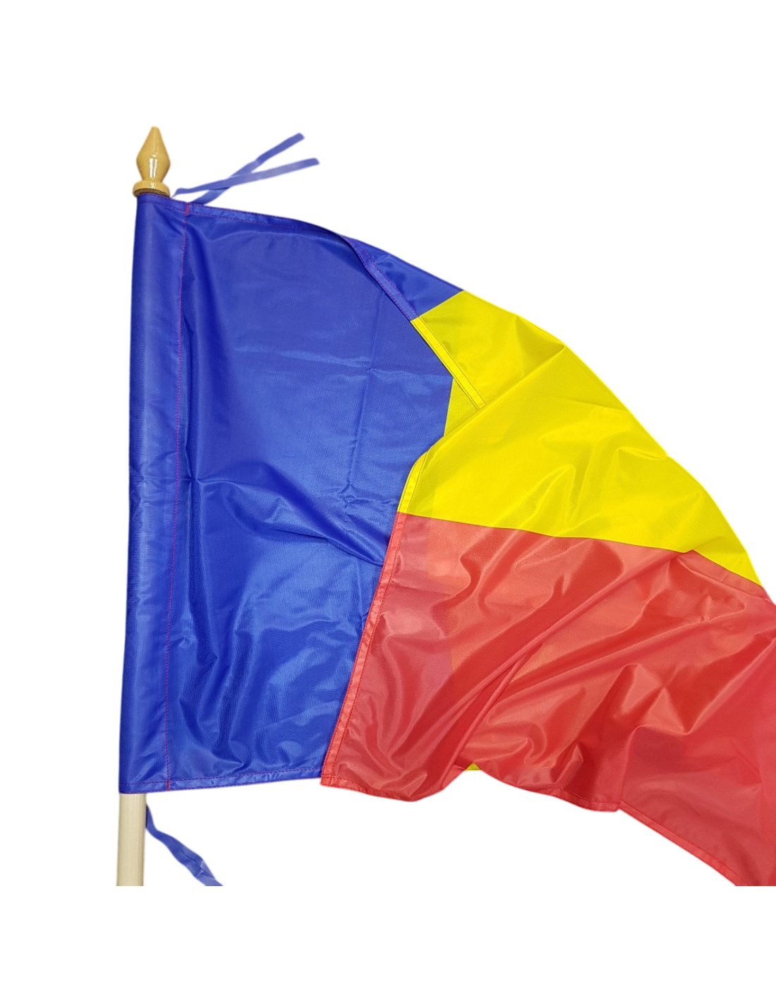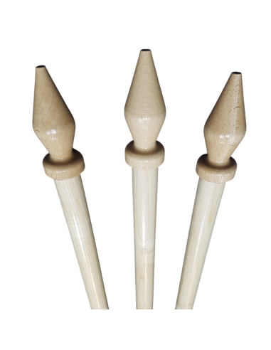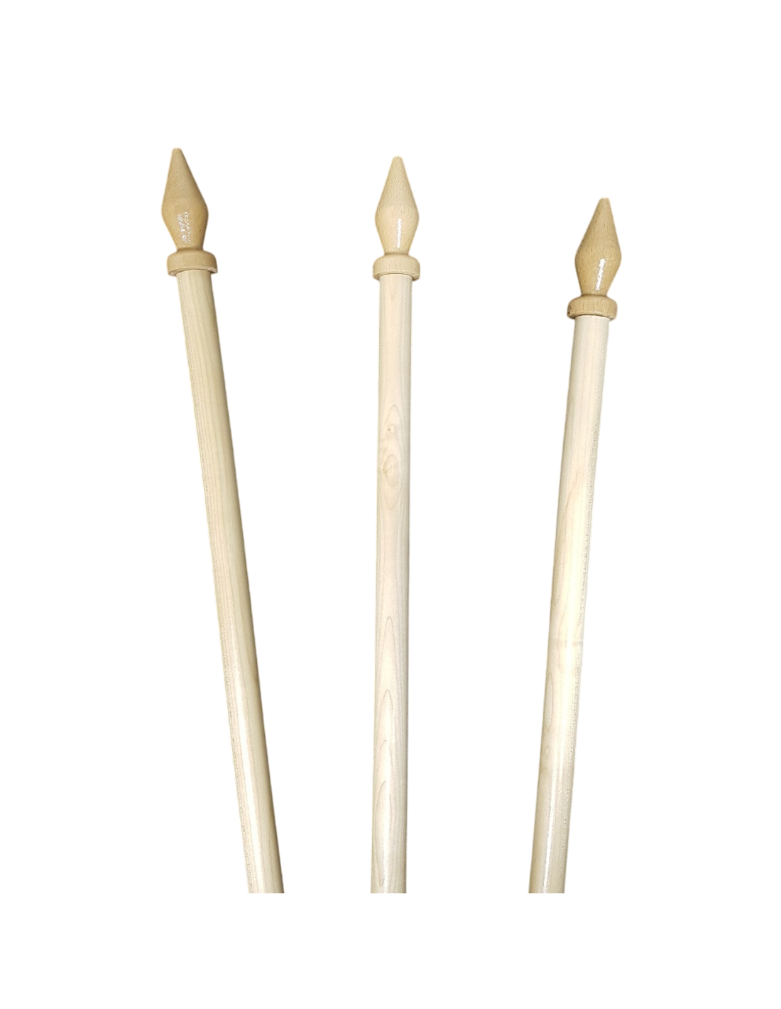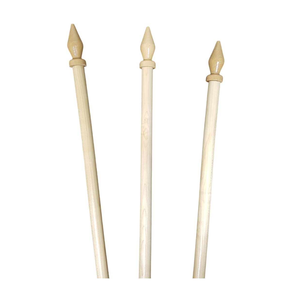 Băț pentru steag (lance, hampă) realizată din lemn lăcuit culoare natur și cu ornament în vârf .