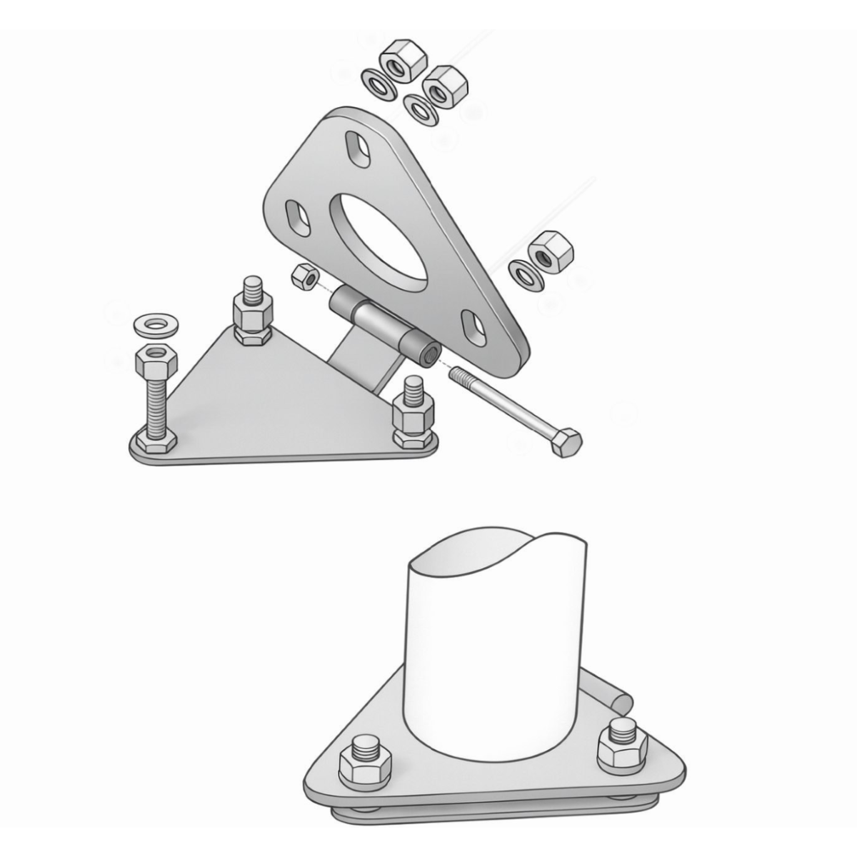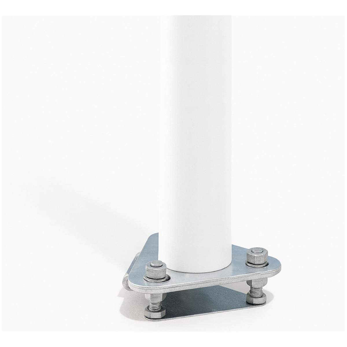 Catarg din fibra de sticla, culoare alba, forma conica, complet echipat cu armatura de fixare in beton, cu balama pentru rabatare.
