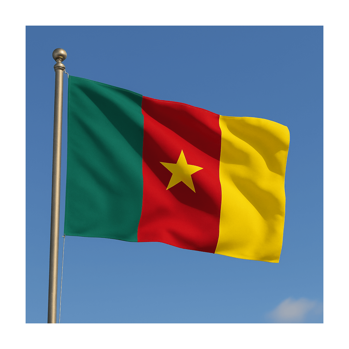 Steag Camerun realizat de noi din materiale rezistente și finisat cu grijă. O alegere practică pentru arborare, decor sau colecții tematice.