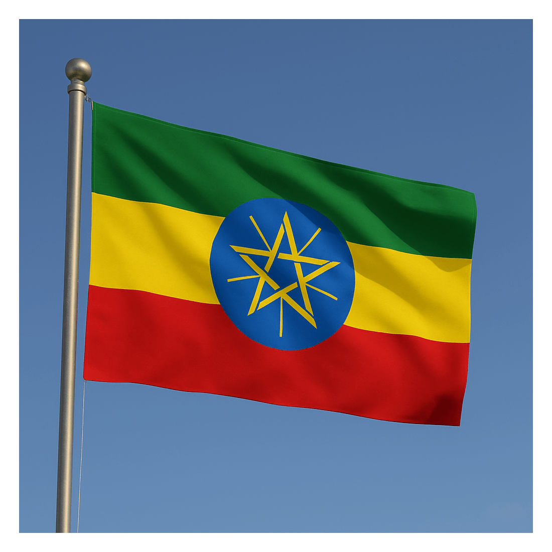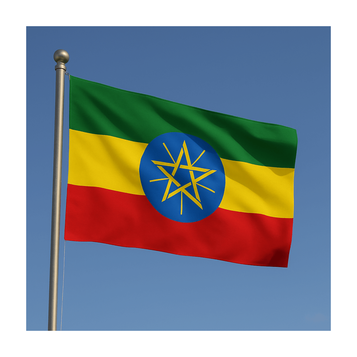 Steag Etiopia confecționat de noi din materiale durabile și rezistente. O alegere practică pentru arborare, decor sau colecții tematice.