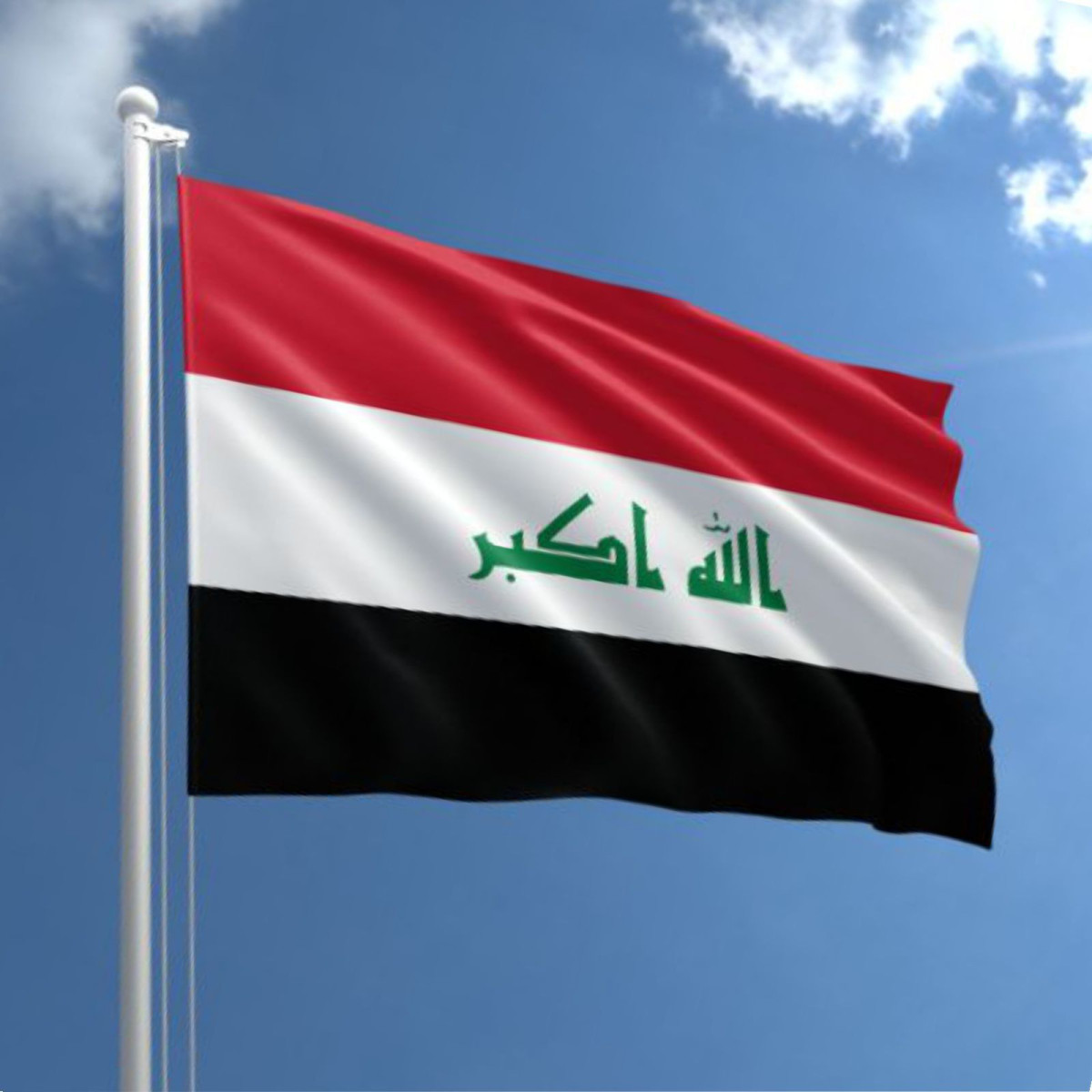 Drapelul național al Irakului, în culorile roșu, alb și negru, are inscripția verde „Allahu Akbar” pe banda centrală. Este imprimat la rezoluție înaltă și finisat cu precizie. Confecționat din material rezistent, durabil la vânt și intemperii, păstrează culorile vibrante și margini cusute profesional.
