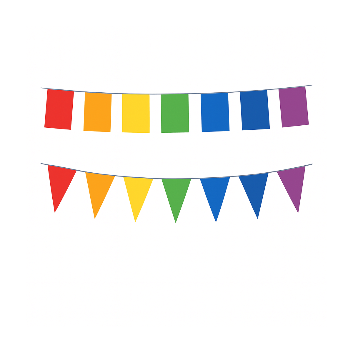 Ghirlandă cu stegulețe colorate, tip curcubeu. Potrivită pentru decor la petreceri și evenimente speciale.