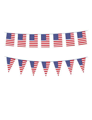 Ghirlanda cu stegulețe ale Statelor Unite este realizată din material ușor și rezistent.