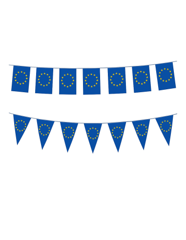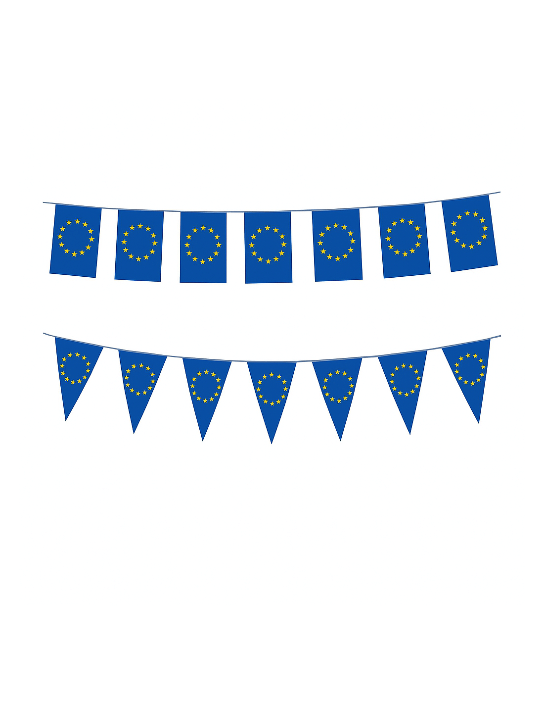Ghirlandă cu stegulețe ale Uniunii Europene. Ideală pentru decor la evenimente oficiale și manifestări publice.