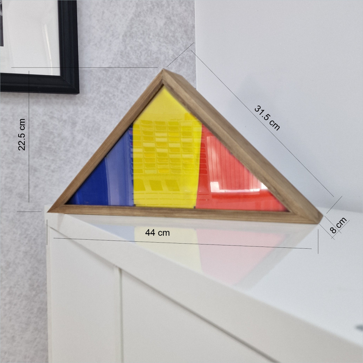 Kit drapel Romania cu lance cu suport podea lemn masiv de frasin lacuit natur.