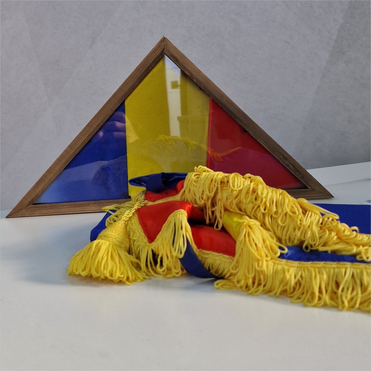 Drapel imprimat pe satin, extralucios, calitate exelenta, cu franjuri si ciucuri, recomandat pentru: ambasade, receptie hoteluri, birouri.
