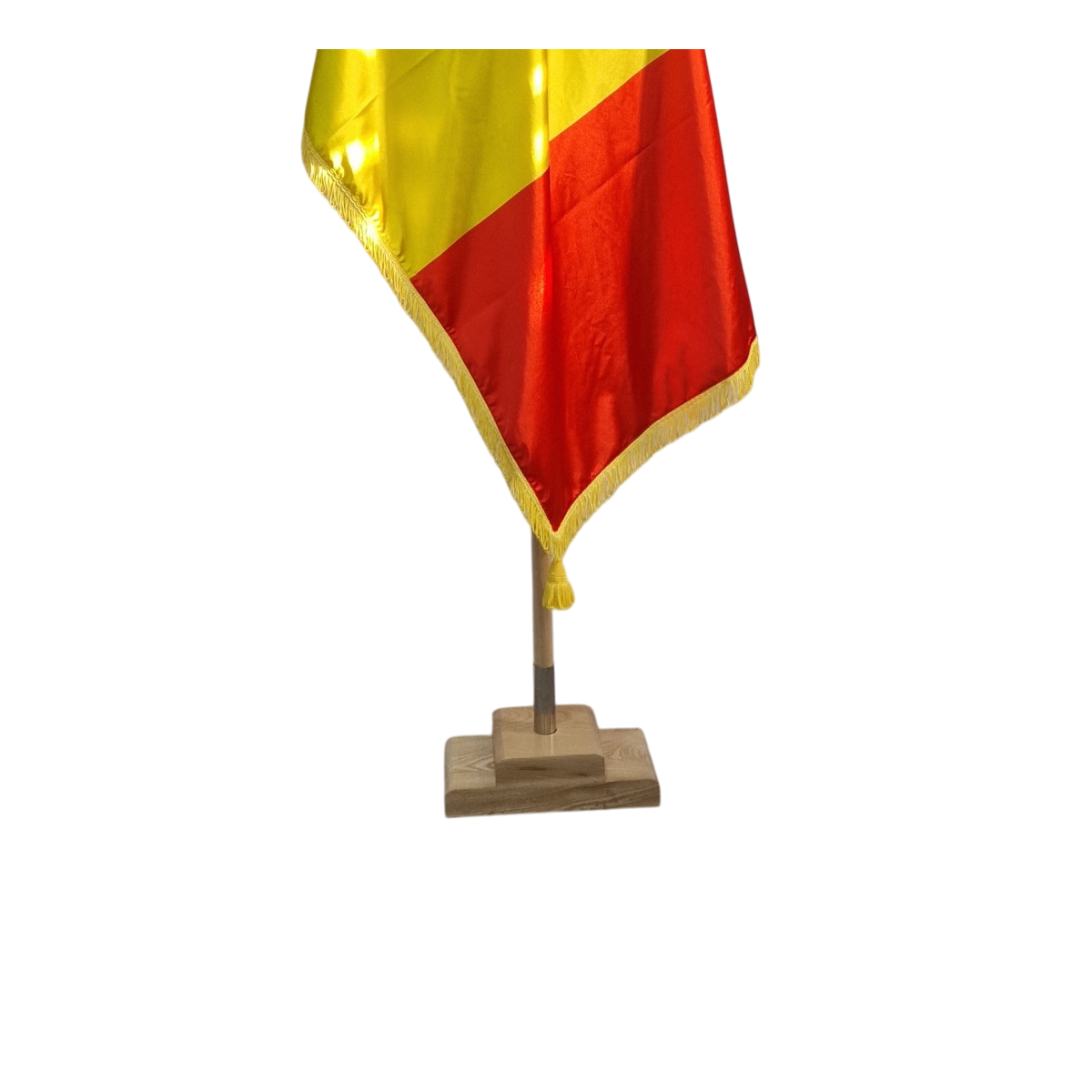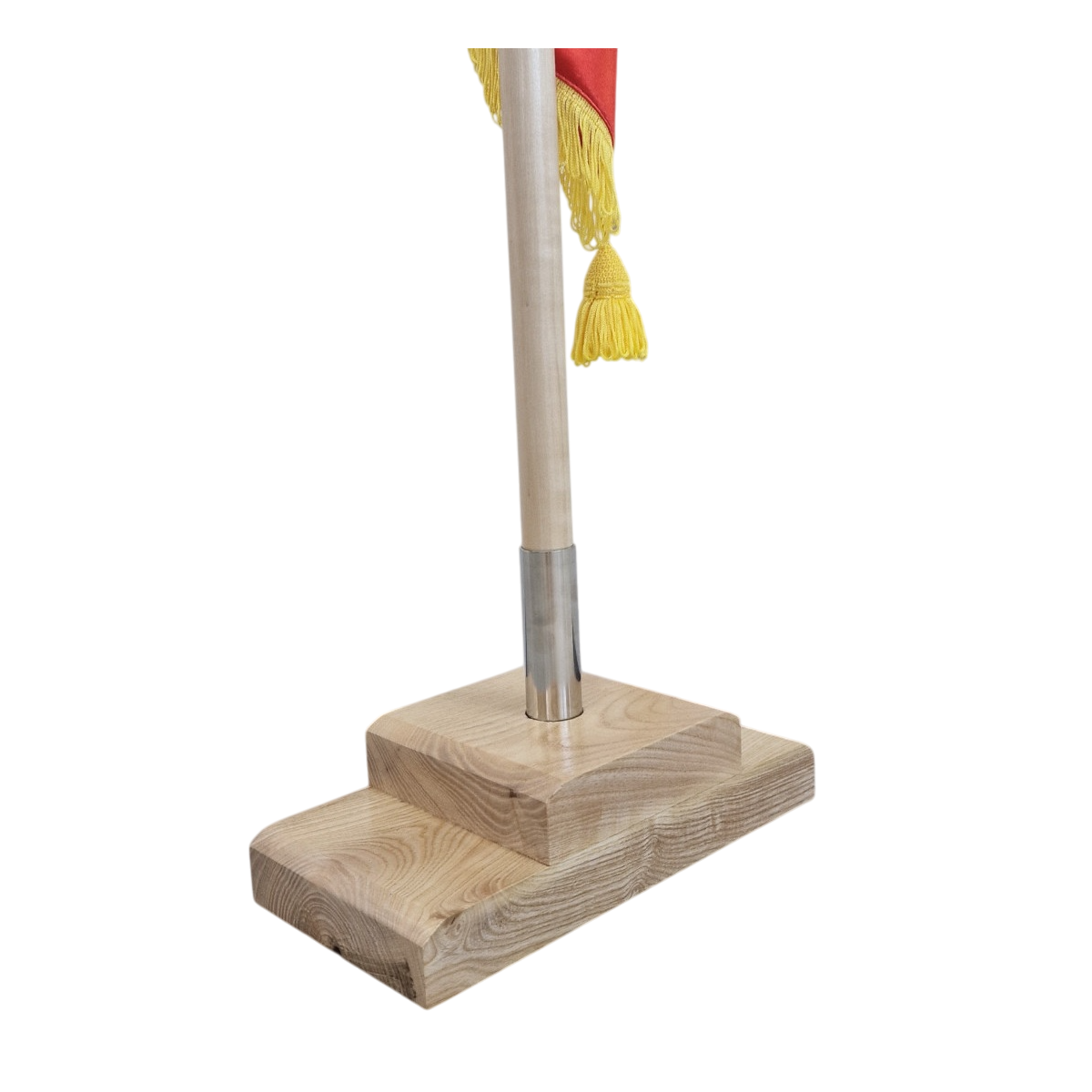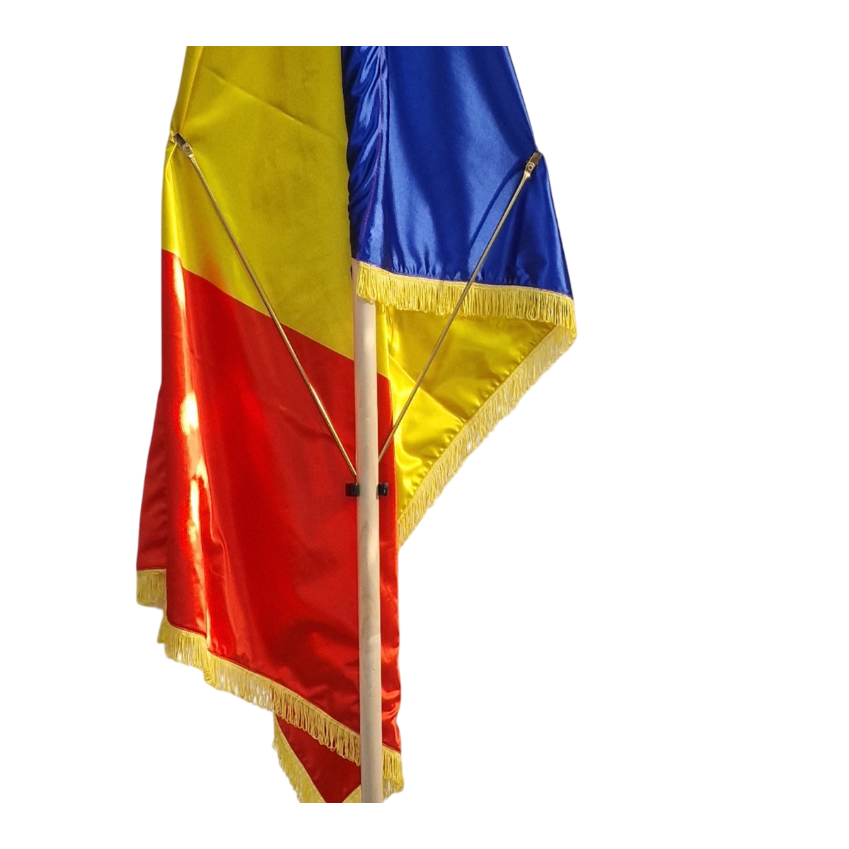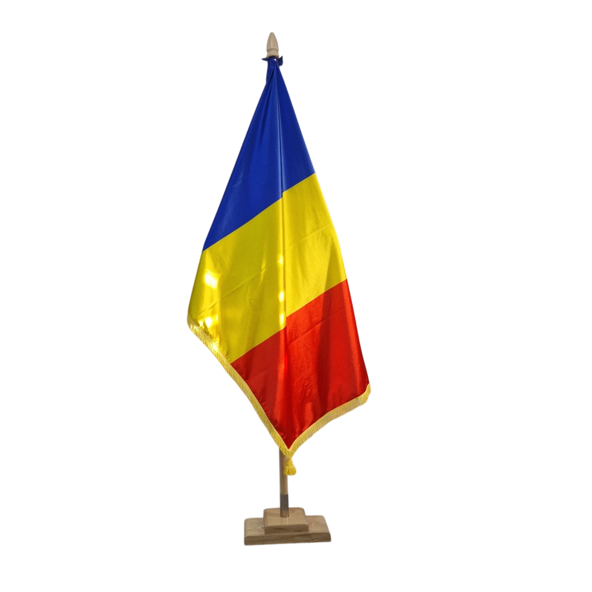 Kit drapel Romania cu lance cu suport podea lemn masiv de frasin lacuit natur.