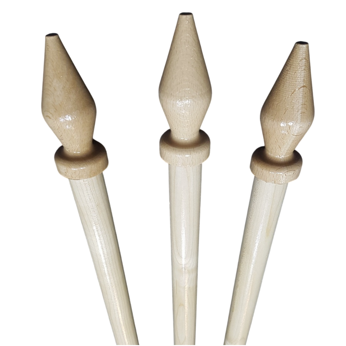 Băț pentru steag (lance, hampă) realizată din lemn lăcuit culoare natur și cu ornament în vârf .