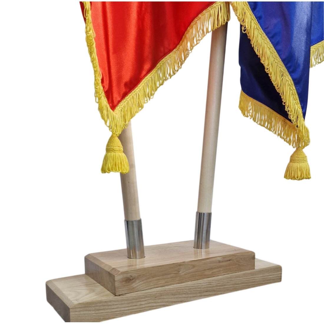 Portdrapel din lemn masiv de frasin lacuit natur, recomandat pentru arborarea drapel interior birouri, sedii primarii, institutii publice.