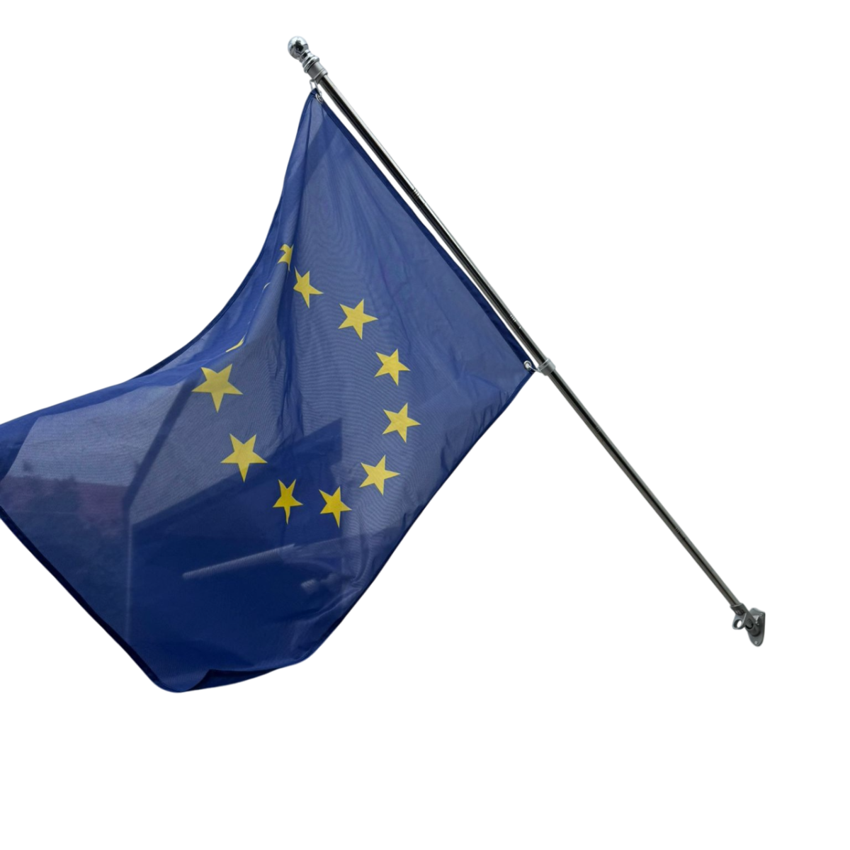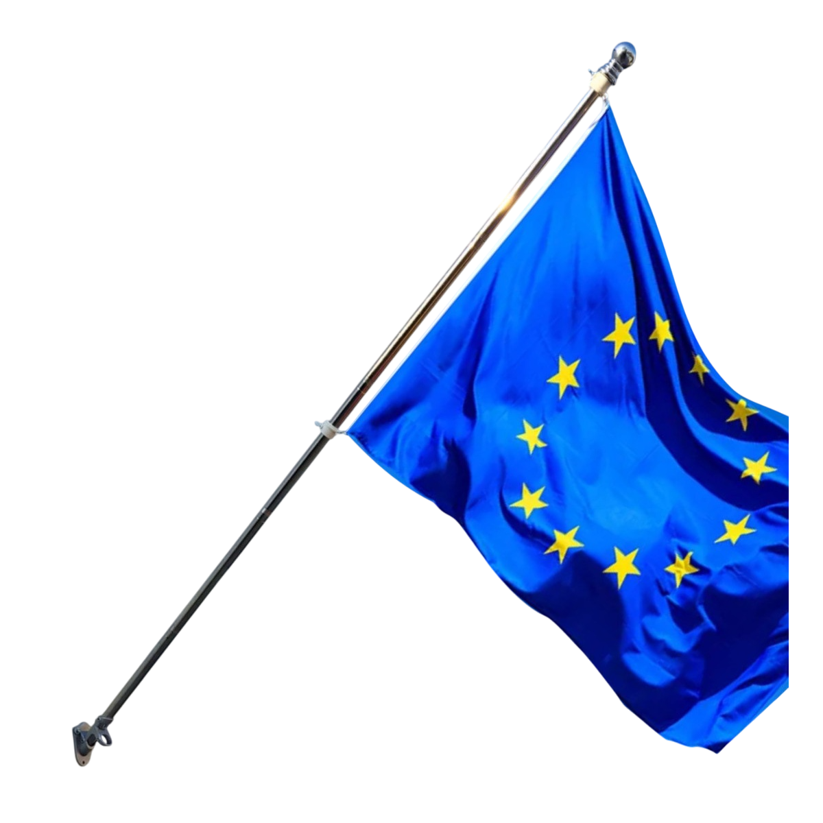 Kit complet pentru arborare cu steag UE inclus – Catarg modern, dotat cu inele reglabile din aluminiu pentru adaptarea înălțimii la diverse formate de steag. Datorită designului său optimizat, steagul european rămâne întins și vizibil, fără să se răsucească în bătaia vântului.