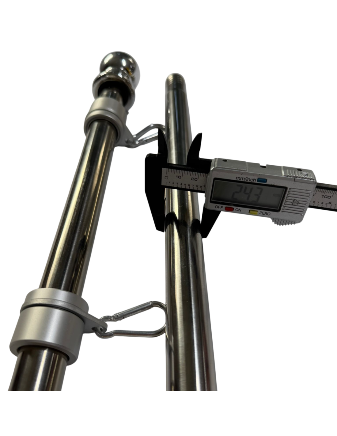 Catargul este prevăzut cu două inele reglabile din aluminiu, care permit ajustarea înălțimii în funcție de dimensiunea steagului și previn răsucirea materialului în bătaia vântului. Cele două carabiniere asigură prinderea rapidă și sigură a steagului personalizat.