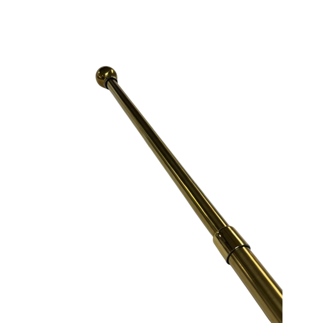 Suport metalic de interior pt drapel, de culoare aurie, cu inaltime reglabila intre 1.70 m si 2.60 m si ornament in varf de tip bila.