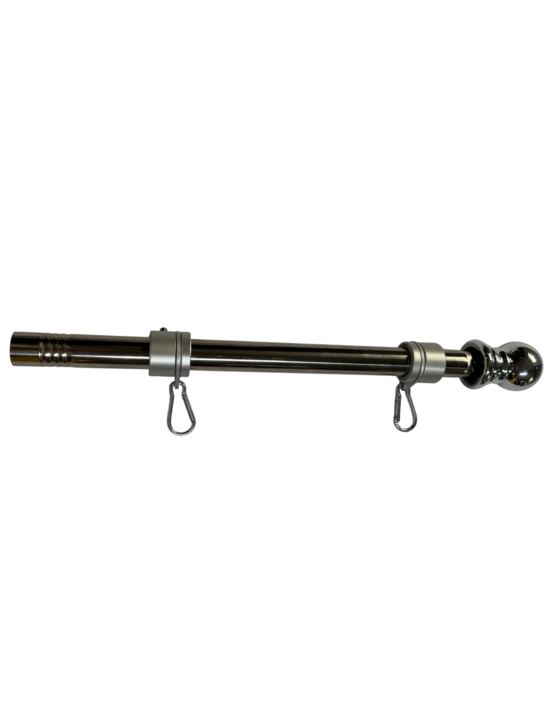 Catargul este dotat cu două inele reglabile din aluminiu, care permit ajustarea înălțimii în funcție de dimensiunea steagului și previn înfășurarea acestuia pe vreme cu vânt. În plus, cele două carabiniere asigură o prindere rapidă și sunt ușor de utilizat.