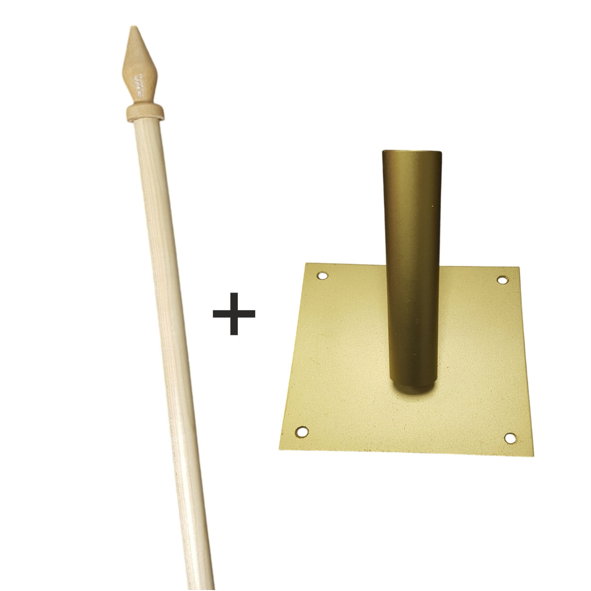 Pachetul lance din lemn cu suport metalic este soluția practică pentru montarea și afișarea steagurilor la locuințe, instituții sau spații comerciale. Lancea este realizată din lemn rezistent, cu vârf decorativ elegant, iar suportul metalic, vopsit și solid, permite prinderea sigură pe perete.