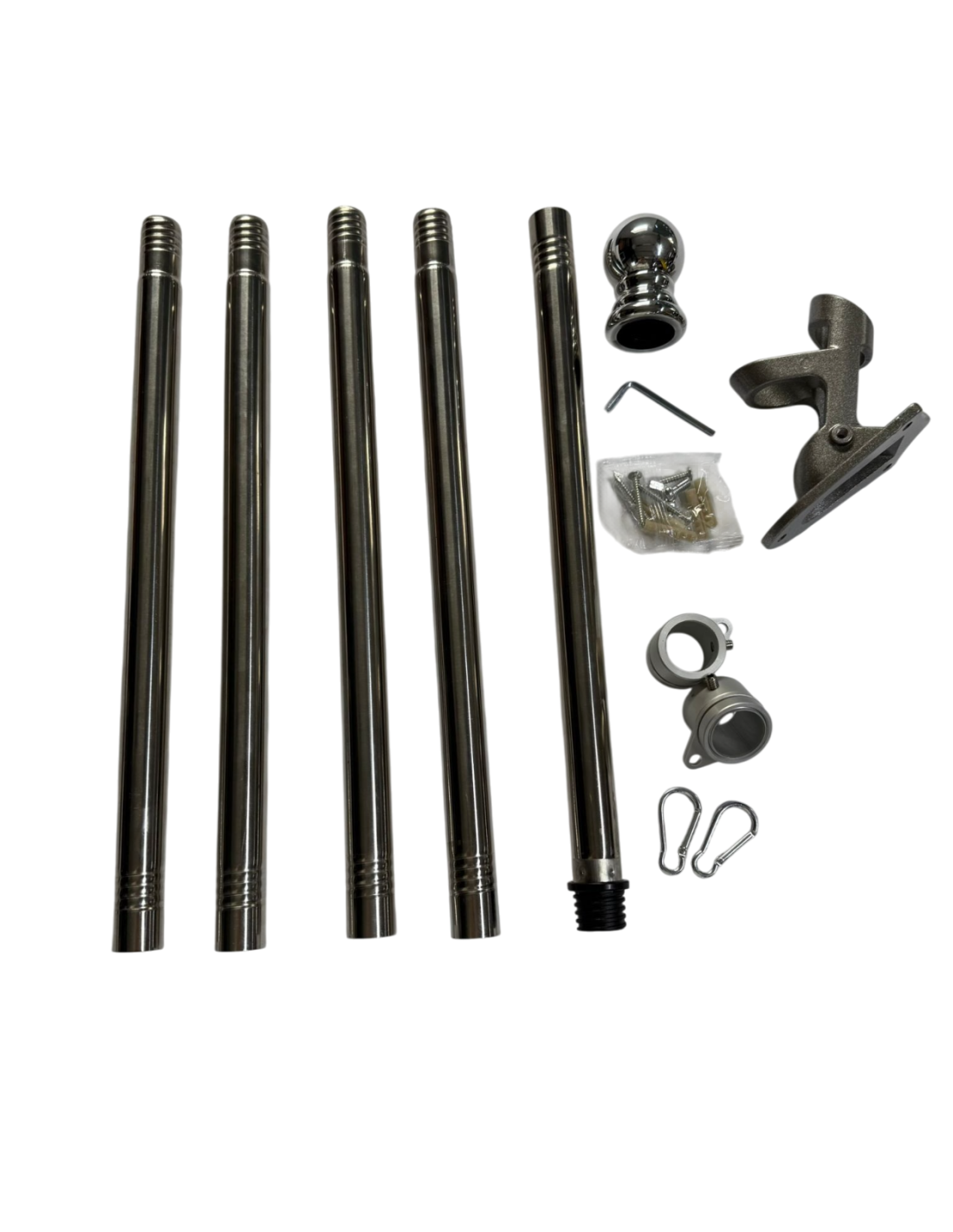 - 5 segmente din oțel inoxidabil pentru catargul de steag, lungime totală 1,8 m