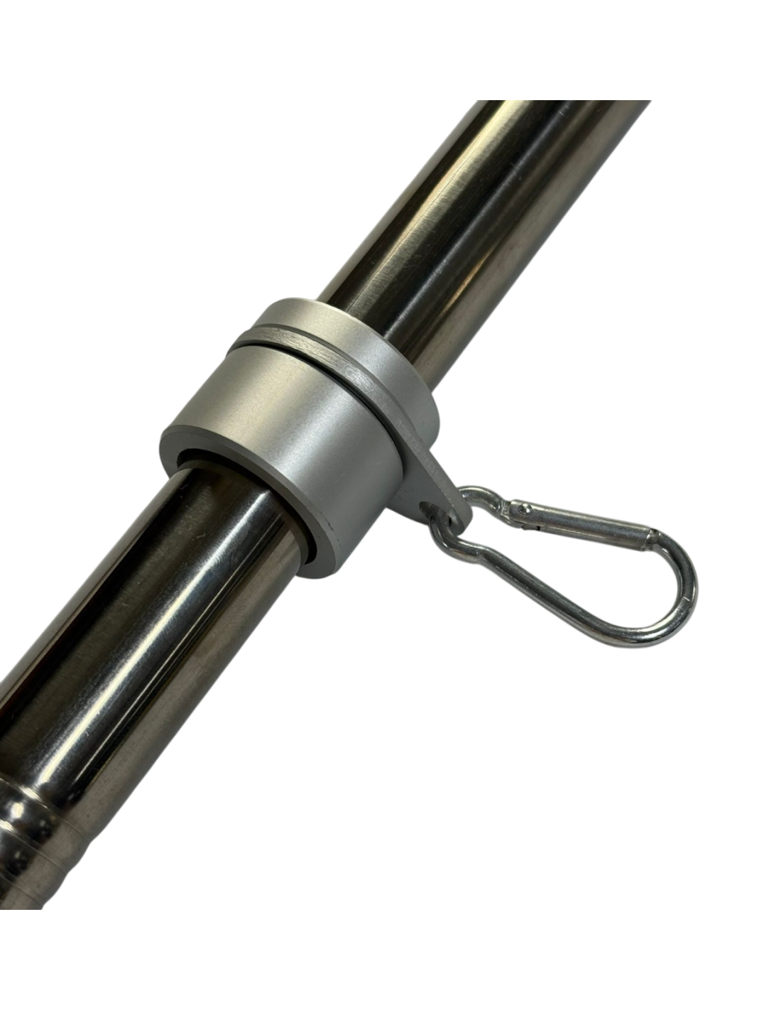 Catargul este dotat cu două inele reglabile din aluminiu, care permit ajustarea înălțimii în funcție de dimensiunea steagului și previn înfășurarea acestuia pe vreme cu vânt. În plus, cele două carabiniere asigură o prindere rapidă și sunt ușor de utilizat.