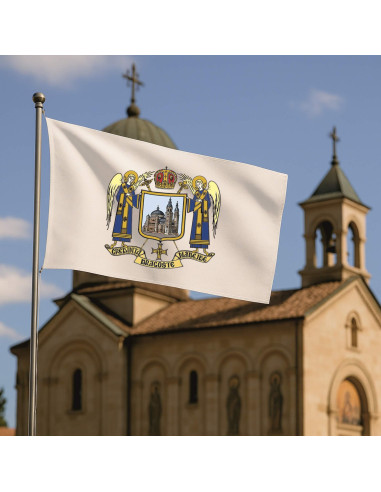 Stema Mitropoliei Ardealului, realizată cu detalii de calitate. Utilizată în contexte religioase și bisericești.