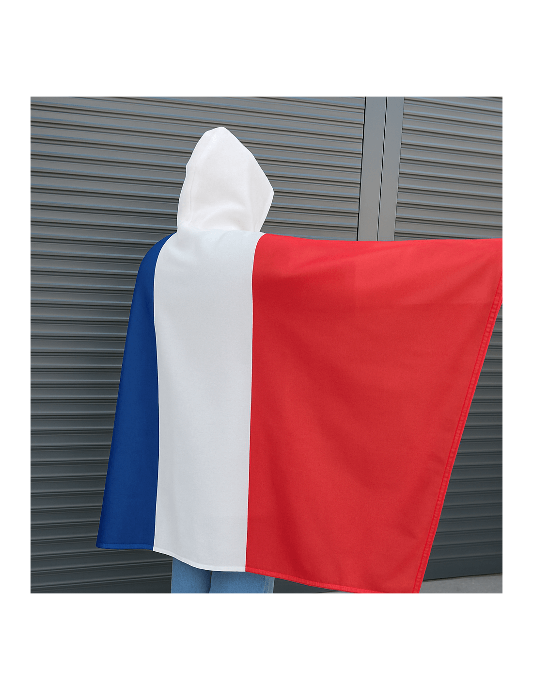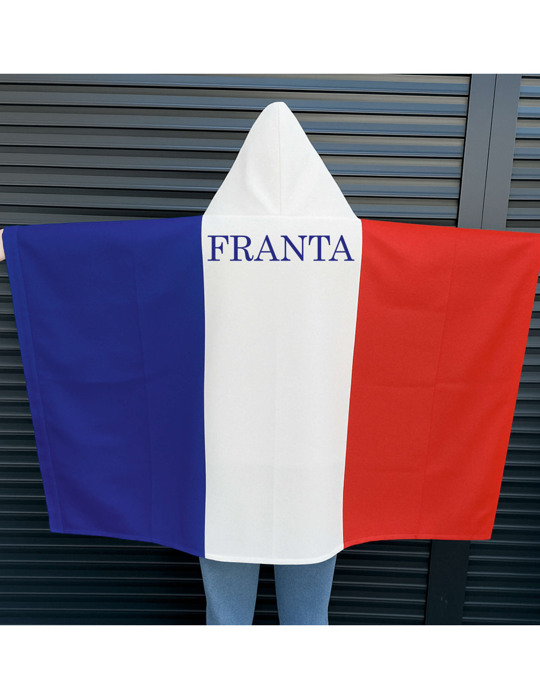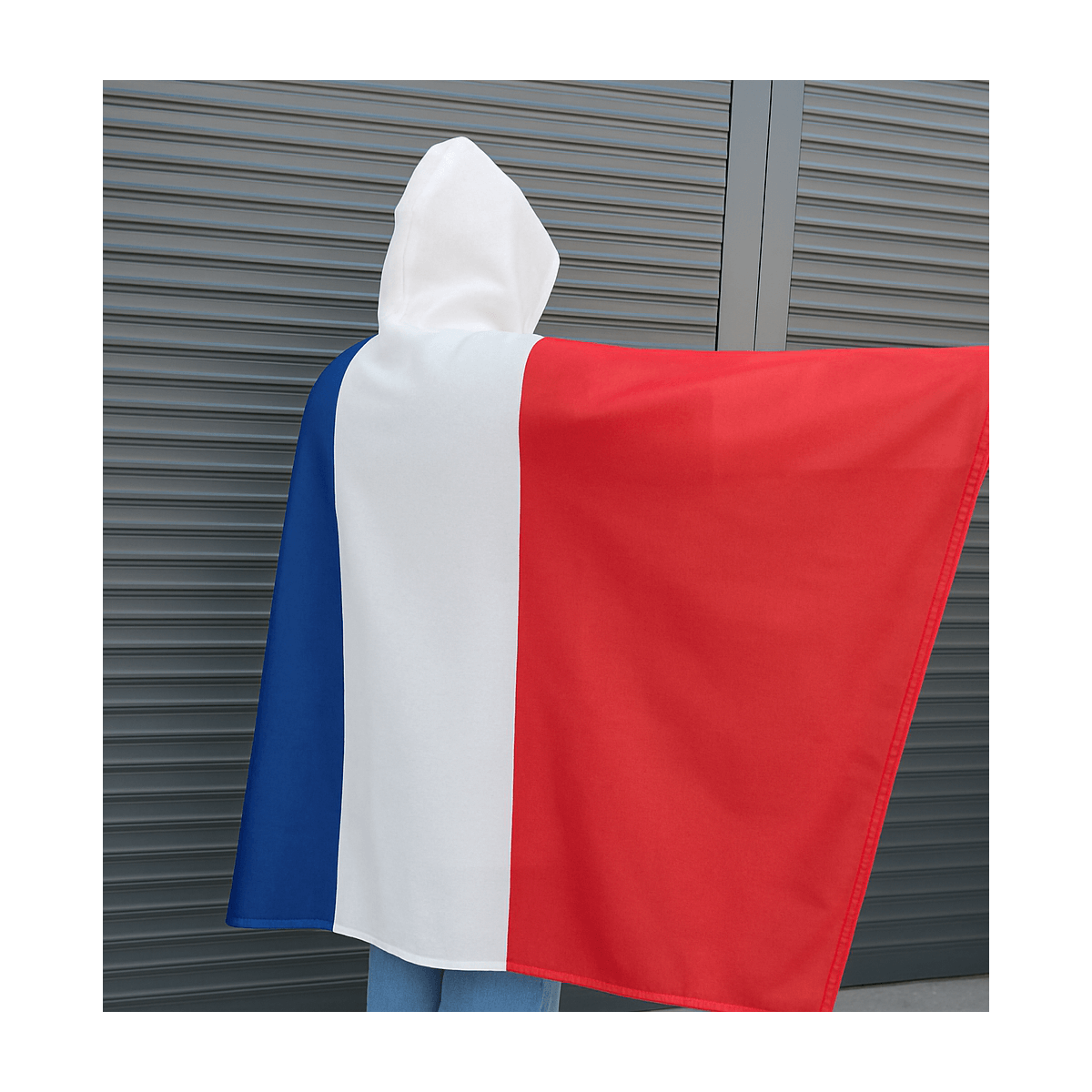 Pelerină cu glugă din material tip steag, perfectă pentru suporteri și evenimente. Poate fi personalizată la cerere cu orice design, devenind un accesoriu unic și memorabil.