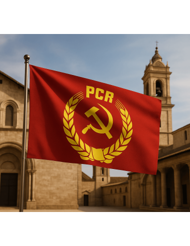 Steagul PCR, simbol al perioadei comuniste din România. Potrivit pentru colecționari și expoziții cu tematică istorică.