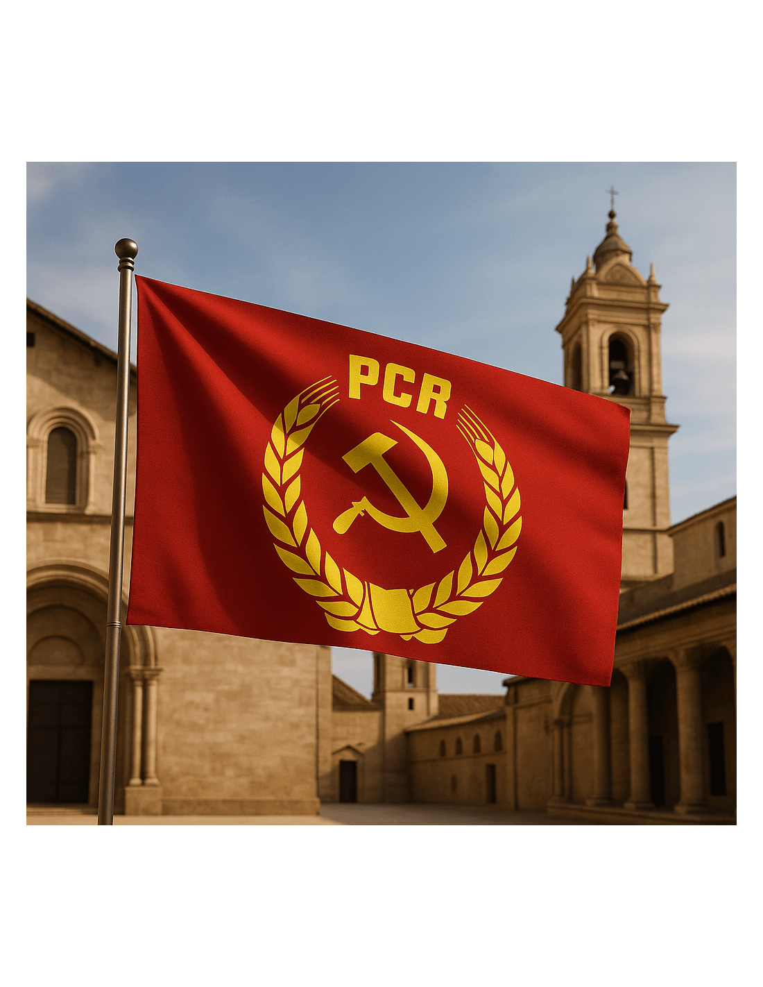 Steagul Partidului Comunist Român (PCR) este de culoare roșie, având ca simbol principal secera și ciocanul încadrate de spice de grâu.