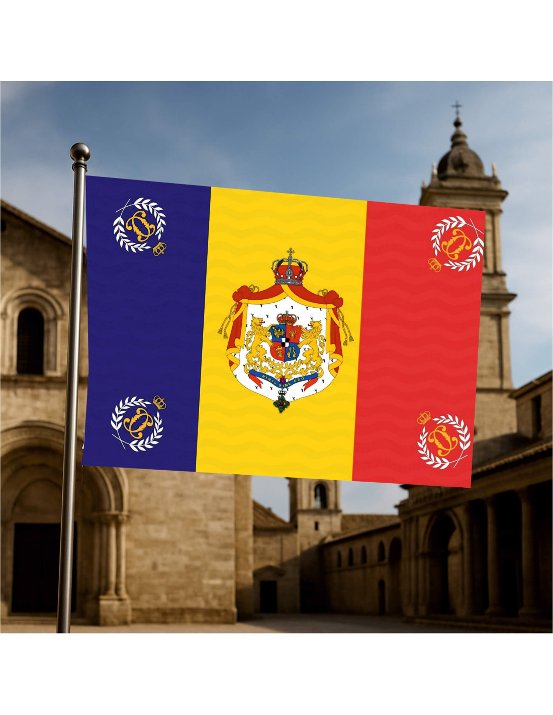 Steagul regal al României din timpul regelui Carol. Simbol al monarhiei și al istoriei moderne a țării.