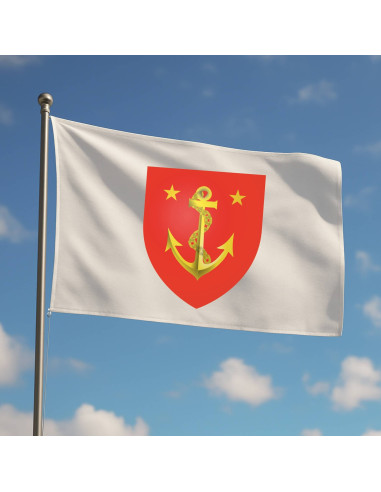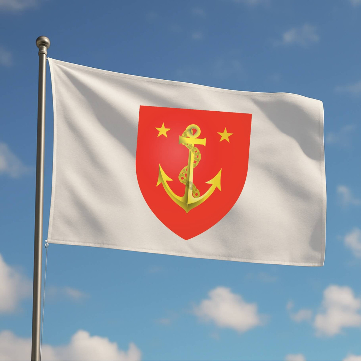 Steagul județului Galați, cu stema pe fond alb ce include ancora și șarpele – simbol al portului și al ocrotirii. Realizat din material rezistent, ideal pentru instituții și evenimente.