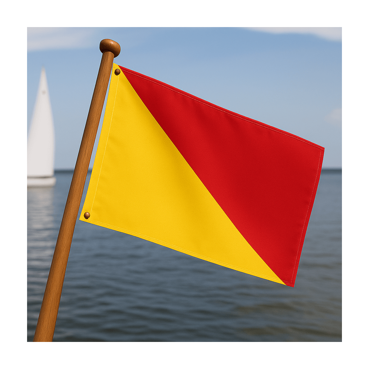 În uz maritim, semnificația sa este: „Om peste bord”. Este un steag extrem de important pentru siguranța pe mare.
