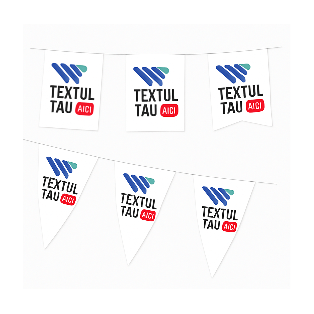 Ghirlandă stegulețe personalizată cu text sau logo. Perfectă pentru evenimente și decoruri speciale.