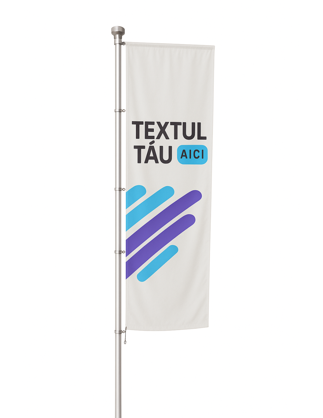 Steag vertical personalizabil, ideal pentru branduri, companii sau evenimente. Poți adăuga propriul text, logo sau design unic.