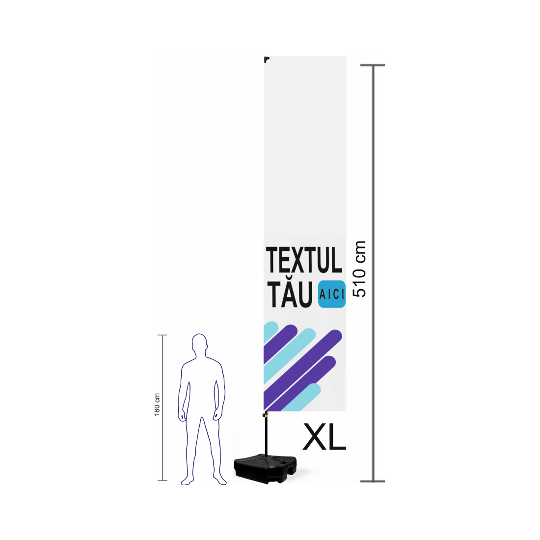 Personalizarea steagurilor publicitare este realizata cu imprimare directa prin sublimare la o rezolutie de pana la 1440dpi. Materialul textil utilizat este din poliester 100% cu o greutate de 117g/mp si cu protectie UV pentru o utilizare indelungata