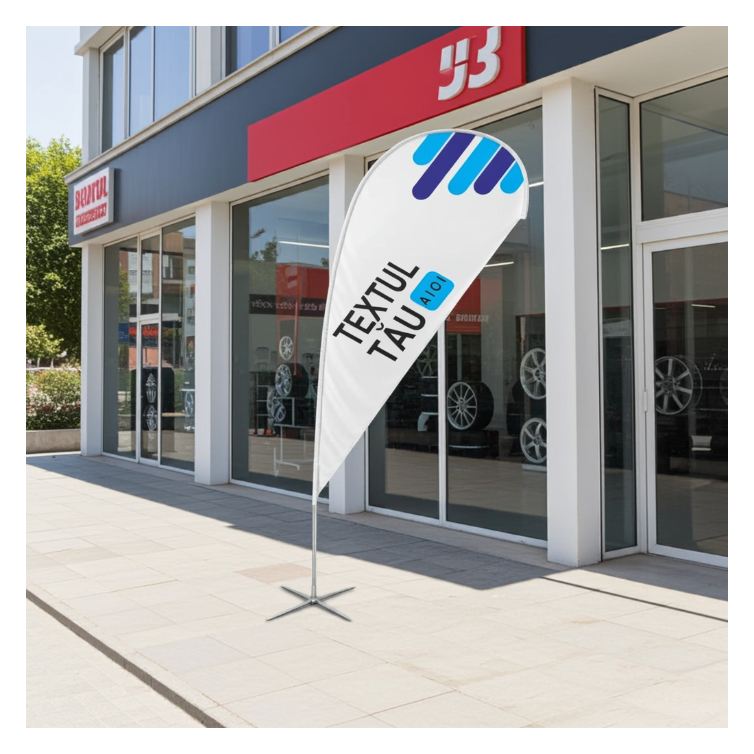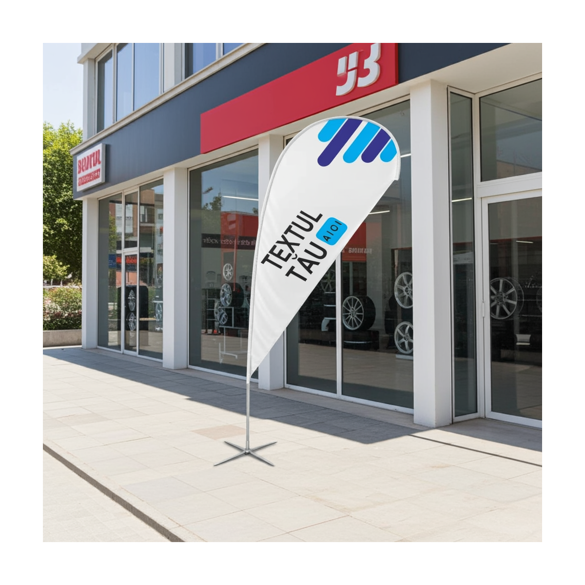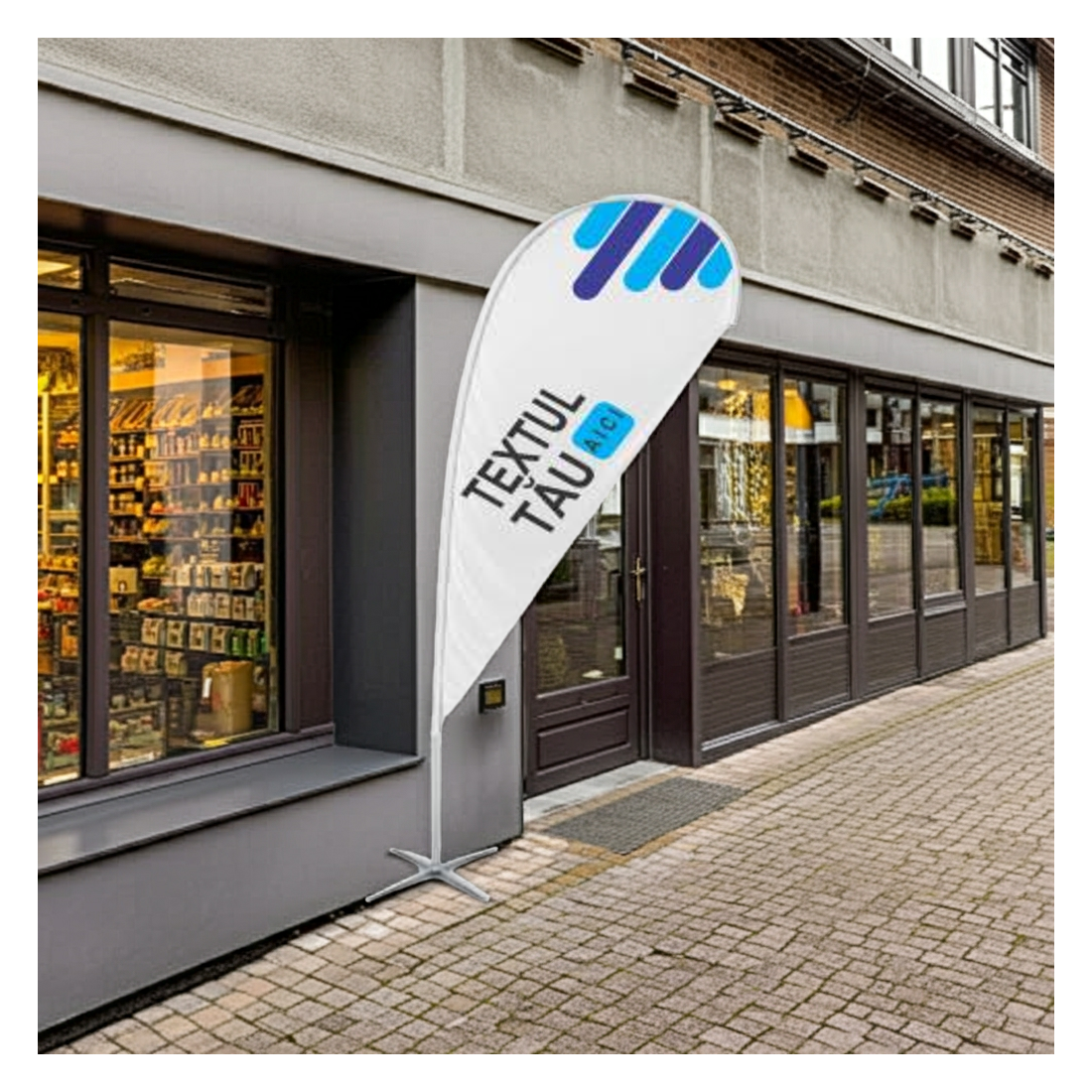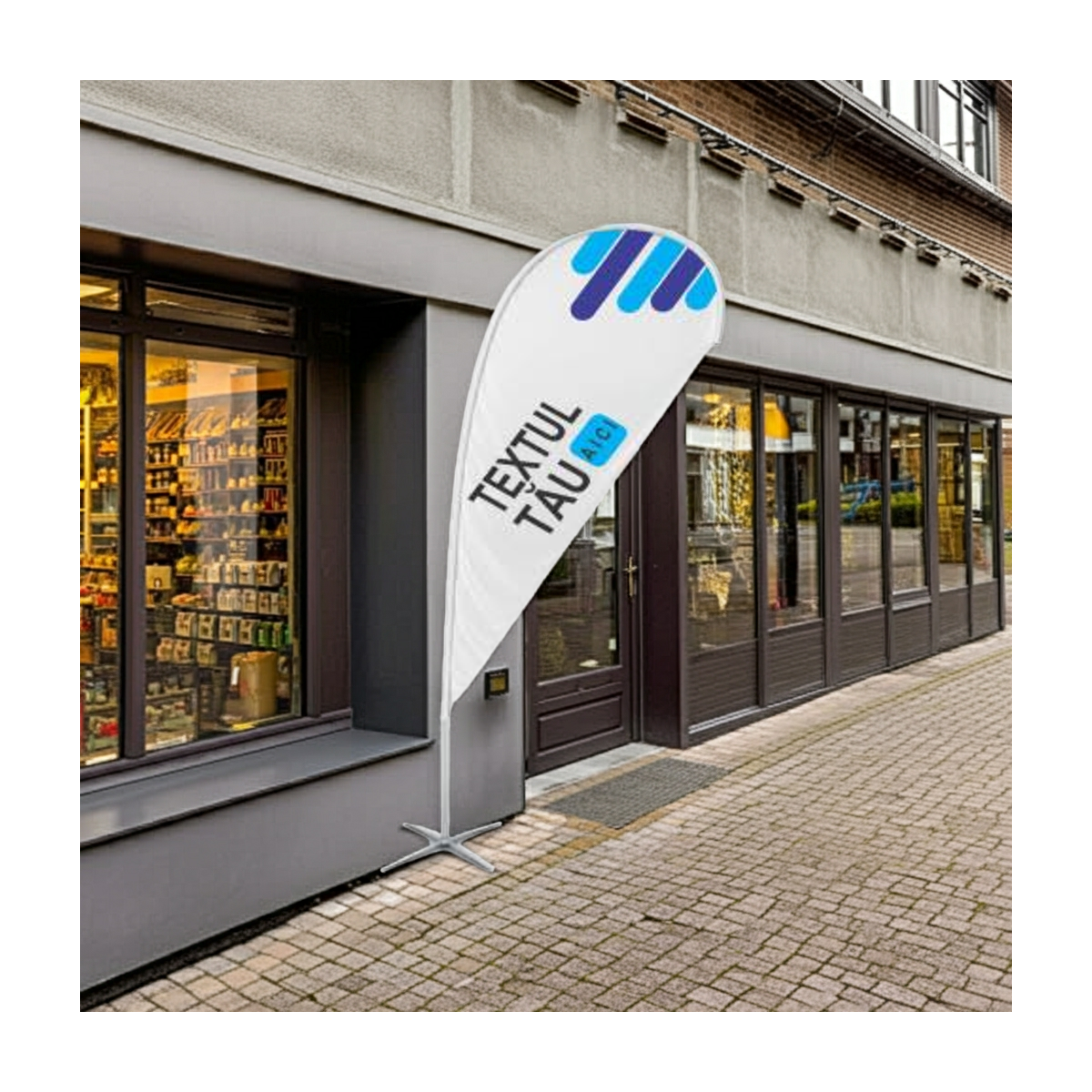 Steag lacrimă personalizat cu logo, slogan si produsele tale!