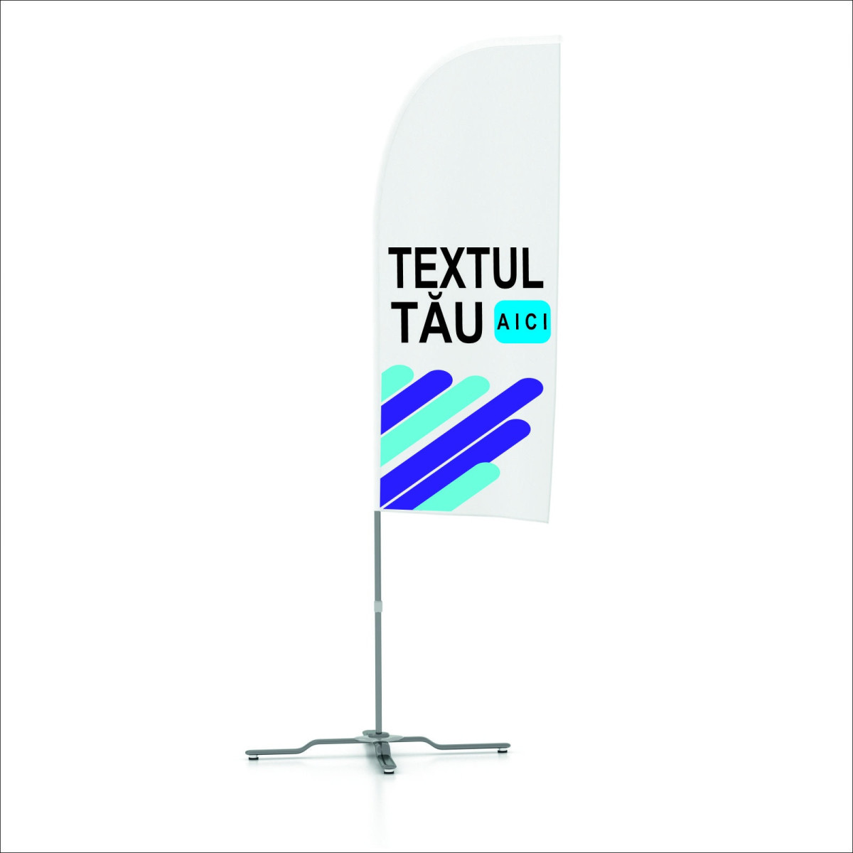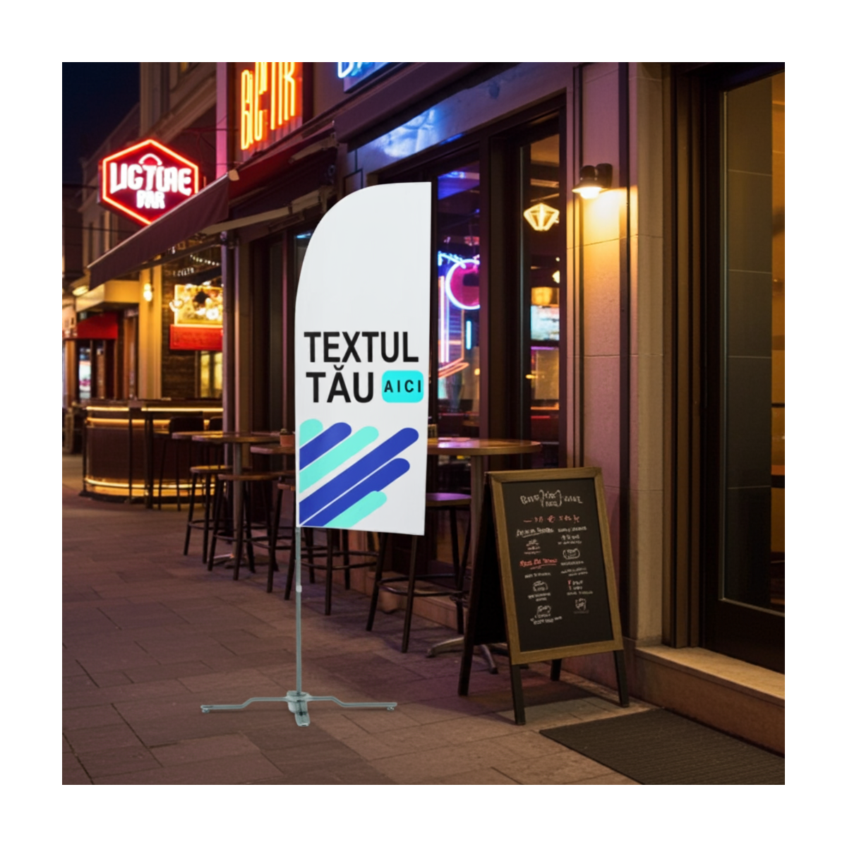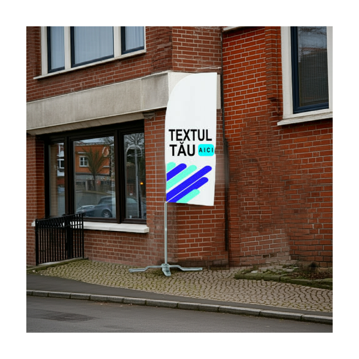 Steag vela personalizat cu logo-ul, sloganul și produsele tale – perfect pentru evenimente sau promovare outdoor.