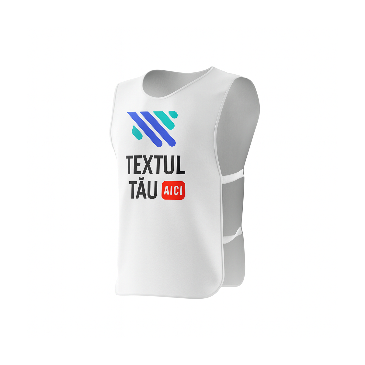 Vestă textilă personalizată din poliester, ușoară și rezistentă, cu prindere elastică laterală și imprimare în culori vii. Ideală pentru sport, evenimente și activități de echipă.