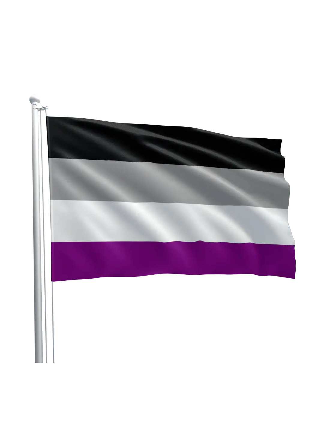 Steagul Asexual Pride reprezintă forța, unitatea și vizibilitatea comunității asexuale. Dungile neagră, gri, albă și mov exprimă diversitatea și identitatea celor care se regăsesc în spectrul asexual. Realizat din material rezistent și culori vii, acest steag este o declarație de apartenență și mândrie, ideal pentru a fi arborat acasă, în spații personale sau în locuri publice, pentru a transmite un mesaj clar: „Suntem aici și merităm vizibilitate.”
