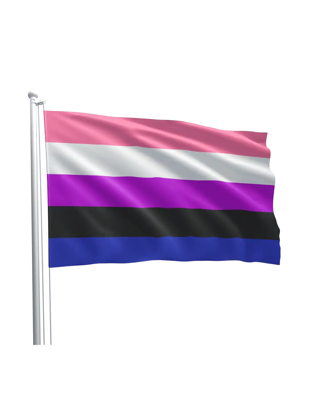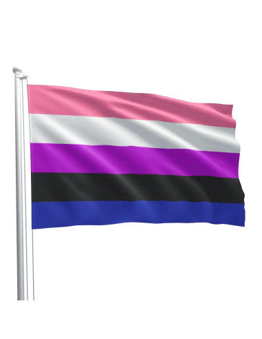 Steagul Genderfluid Pride este un simbol al diversității și al fluidității identităților de gen. Cu dungi în roz, alb, violet, negru și albastru, acesta reflectă frumusețea și complexitatea spectrului de gen, oferind vizibilitate și recunoaștere comunității genderfluid. Confecționat din material textil rezistent, cu print de înaltă calitate, acest steag este ideal pentru exprimarea identității, a libertății și a solidarității.