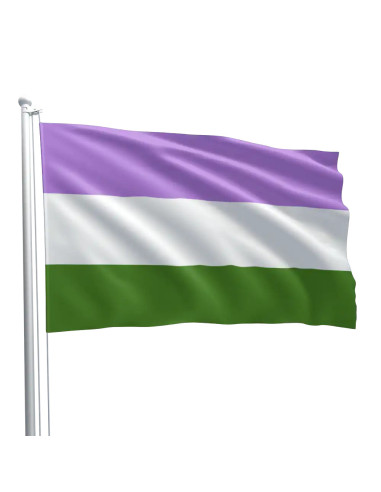 Steag Genderqueer Pride – un simbol al libertății și al autenticității, realizat din material rezistent, cu culori puternice și durabile.