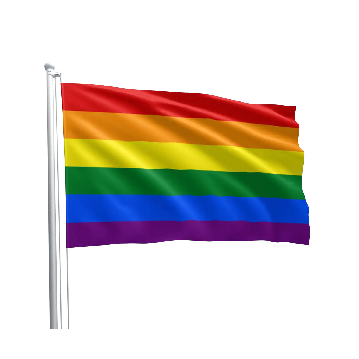 Steag LGBT (Rainbow Flag), realizat din poliester rezistent, cu culori vii și tiv întărit. Ideal pentru parade, evenimente și decor.