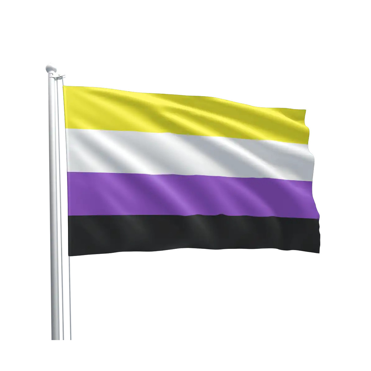 Steagul Nonbinary Pride este simbolul recunoașterii și afirmării persoanelor care nu se identifică strict ca bărbat sau femeie. Cu cele patru culori distincte – galben, alb, mov și negru – steagul exprimă diversitatea identităților nonbinare și dorința de vizibilitate și respect. Este ideal pentru a transmite un mesaj de mândrie, solidaritate și libertate de exprimare a propriei identități.