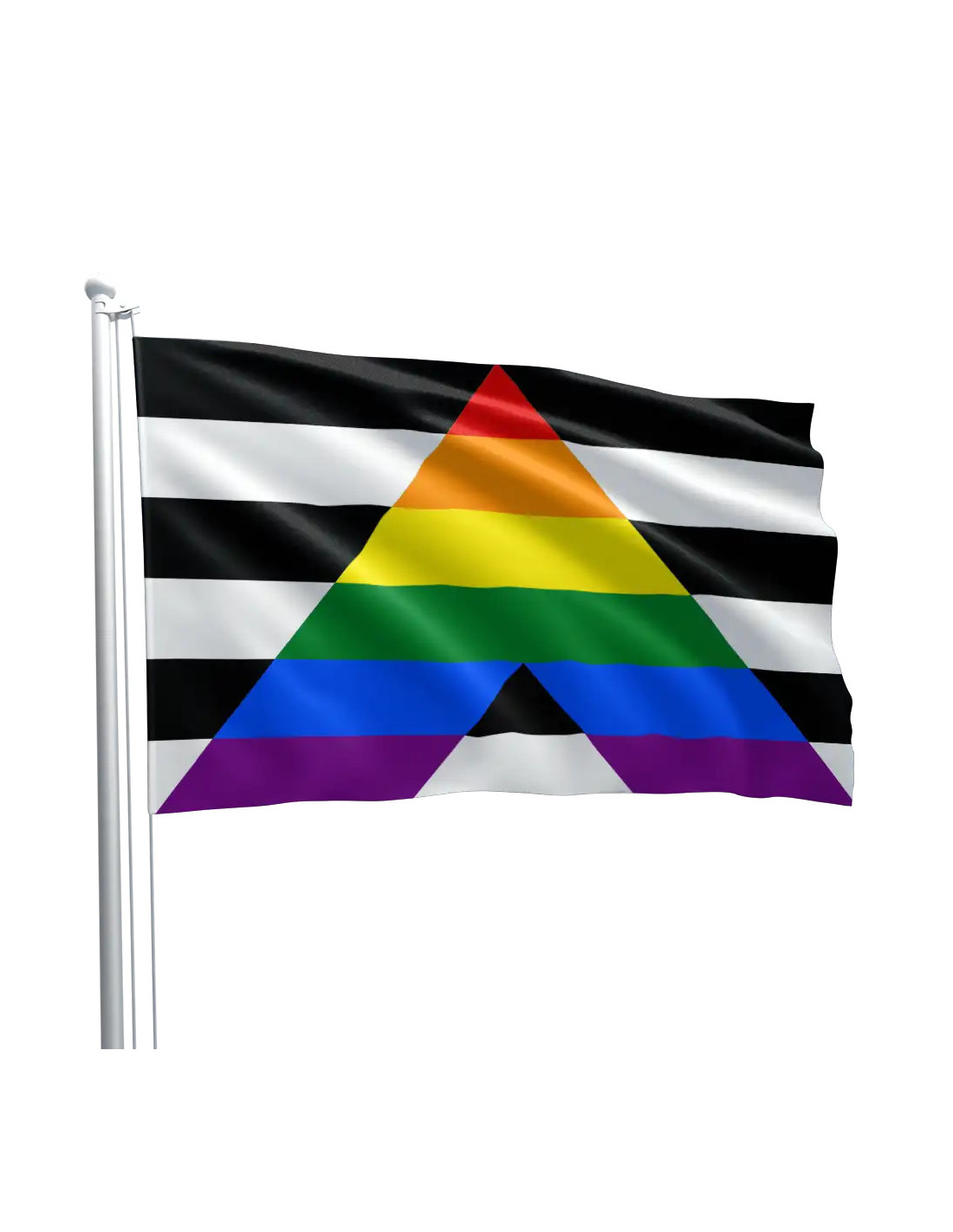 Steagul Straight Allies Pride este simbolul celor care, deși se identifică drept heterosexuali, aleg să fie alături de comunitatea LGBTQ+. Fundalul alb-negru, care sugerează heterosexualitatea, este străpuns de „A”-ul format din culorile curcubeului, reprezentând sprijinul și solidaritatea pentru egalitate și drepturi egale. Acest steag transmite un mesaj clar: iubirea și respectul nu au granițe.
