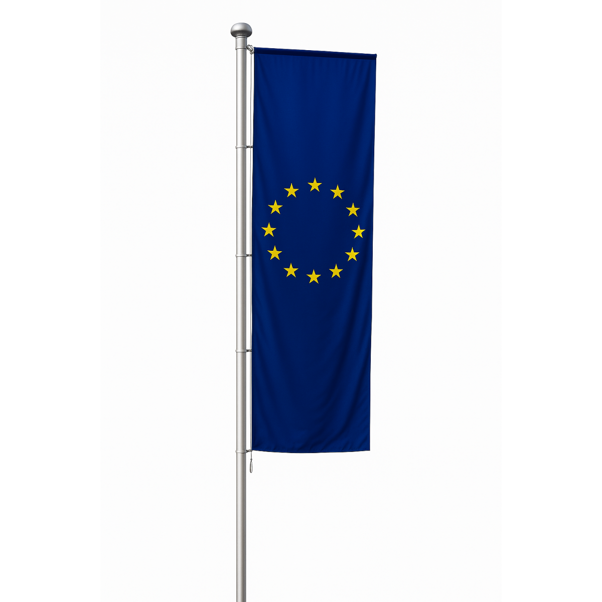 Steagul vertical al Uniunii Europene reprezintă unitatea și valorile comune ale statelor membre. Este confecționat din material de calitate, durabil la exterior și la interior, având culori intense care rezistă în timp. Designul său include cele 12 stele aurii dispuse circular pe fundal albastru, simbol al solidarității și armoniei europene.