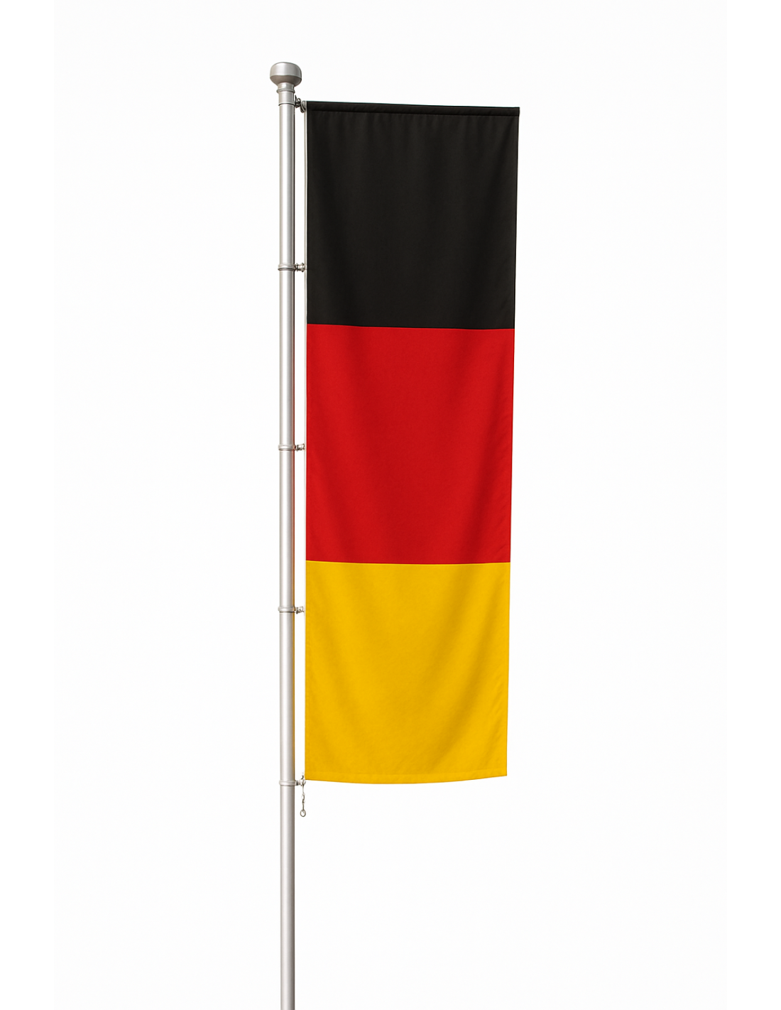 Steag vertical Germania, din material rezistent și culori vibrante. Ideal pentru catarg, instituții și evenimente oficiale.