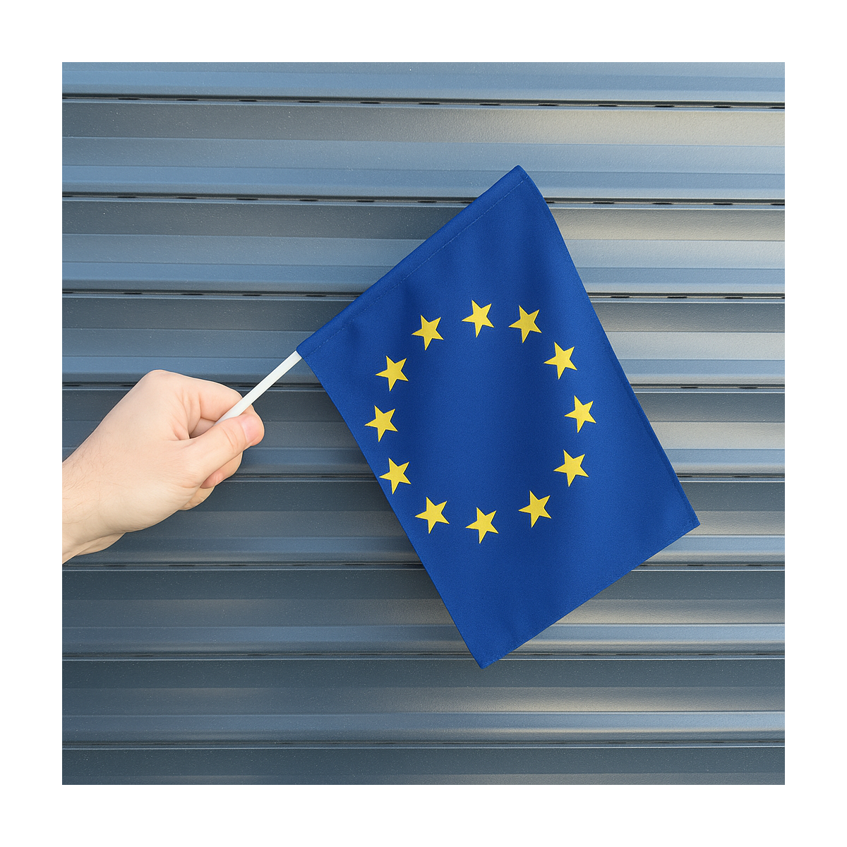 Steguleț de mână cu băț din plastic, rezistent și ușor de folosit. Perfect pentru evenimente, parade și manifestații.